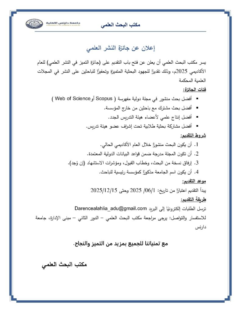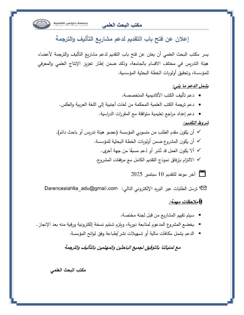 إعلان مكتب البحث العلمي